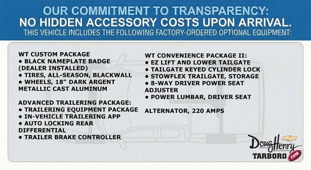ABS brakes, Electronic Stability Control, Heated door mirrors, Low tire pressure warning, Remote keyless entry, Traction control. Shop New Chevrolet Vehicles at Doug Henry Chevrolet Tarboro — One Simple Price, No-Haggle Deals, and Transparent Online Pricing in Eastern North Carolina. (Valid Through 02/02/2026. Please call to verify pricing and availability.) Find the best new Chevrolet deals in Tarboro, Rocky Mount, Greenville, Wilson, Raleigh, and Eastern North Carolina with our One Simple Price—your upfront, competitive, no-haggle price on every new Chevy truck, SUV, crossover, and EV. Explore top models like the Silverado 1500, Silverado 2500HD, Colorado, Equinox, Trax, Traverse, Blazer, Tahoe, Suburban, Malibu, Camaro, Corvette, and Bolt EV. Inventory updates daily with real-time Chevrolet pricing. Customers choose Doug Henry Chevrolet Tarboro for: Upfront, no-haggle Chevrolet pricing Fast online shopping with real inventory Home delivery options A non-commissioned, pressure-free team A trusted, transparent Chevrolet buying experience For the most accurate Chevrolet pricing and incentives, visit DougHenryTarboro.com. Third-party sites may not update offers as quickly. Every new Chevrolet purchase includes our 5-Day Money-Back Guarantee for added confidence. Pricing & Financing Details: Advertised prices exclude taxes, tags, and a $788 administrative fee. Additional Chevrolet incentives, regional discounts, loyalty offers, and finance programs may apply. Ask how to maximize your savings. We are committed to transparent dealership pricing, no-haggle offers, and a smooth buying experience for shoppers searching for new Chevy trucks, SUVs, and cars in Eastern North Carolina. Check our customer reviews to see why buyers choose Doug Henry Chevrolet Tarboro.