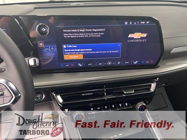 1st and 2nd Row All-Weather Floor Liners, 3rd Row All-Weather Floor Liner, Apple CarPlay/Android Auto, Black Bowtie, Driver Confidence Package, Emergency communication system: OnStar, Evotex Seat Trim, Floor Liner Package, HD Surround Vision, Integrated Cargo Liner, Key Card, Power Outlet, Preferred Equipment Group 1LT, Rear Camera Mirror, Rear Pedestrian Alert, Traffic Sign Recognition, Wheels: 18 Grazen Metallic Machined-Face Aluminum. Shop New Chevrolet Vehicles at Doug Henry Chevrolet Tarboro — One Simple Price, No-Haggle Deals, and Transparent Online Pricing in Eastern North Carolina. (Valid Through 03/02/2026. Please call to verify pricing and availability.) Find the best new Chevrolet deals in Tarboro, Rocky Mount, Greenville, Wilson, Raleigh, and Eastern North Carolina with our One Simple Price—your upfront, competitive, no-haggle price on every new Chevy truck, SUV, crossover, and EV. Explore top models like the Silverado 1500, Silverado 2500HD, Colorado, Equinox, Trax, Traverse, Blazer, Tahoe, Suburban, Malibu, Camaro, Corvette, and Bolt EV. Inventory updates daily with real-time Chevrolet pricing. Customers choose Doug Henry Chevrolet Tarboro for: Upfront, no-haggle Chevrolet pricing Fast online shopping with real inventory Home delivery options A non-commissioned, pressure-free team A trusted, transparent Chevrolet buying experience For the most accurate Chevrolet pricing and incentives, visit DougHenryTarboro.com. Third-party sites may not update offers as quickly. Every new Chevrolet purchase includes our 5-Day Money-Back Guarantee for added confidence. Pricing & Financing Details: Advertised prices exclude taxes, tags, and a $788 administrative fee. Additional Chevrolet incentives, regional discounts, loyalty offers, and finance programs may apply. Ask how to maximize your savings. We are committed to transparent dealership pricing, no-haggle offers, and a smooth buying experience for shoppers searching for new Chevy trucks, SUVs, and cars in Eastern North Carolina. Check our customer reviews to see why buyers choose Doug Henry Chevrolet Tarboro.