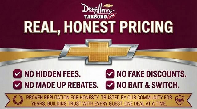 Emergency communication system: OnStar One Essentials, Front and Rear Jet Black All-Weather Floor Liners, Front Doors Keyless Open, Heated Driver and Front Passenger Seats, Heated Power-Adjustable Outside Mirrors, Heated Steering Wheel, LT Convenience Package, Preferred Equipment Group 1LT, Wheels: 17 Inch Gray-Painted Machined Aluminum Alloy, Wrapped Steering Wheel. Shop New Chevrolet Vehicles at Doug Henry Chevrolet Tarboro — One Simple Price, No-Haggle Deals, and Transparent Online Pricing in Eastern North Carolina. (Valid Through 03/02/2026. Please call to verify pricing and availability.) Find the best new Chevrolet deals in Tarboro, Rocky Mount, Greenville, Wilson, Raleigh, and Eastern North Carolina with our One Simple Price—your upfront, competitive, no-haggle price on every new Chevy truck, SUV, crossover, and EV. Explore top models like the Silverado 1500, Silverado 2500HD, Colorado, Equinox, Trax, Traverse, Blazer, Tahoe, Suburban, Malibu, Camaro, Corvette, and Bolt EV. Inventory updates daily with real-time Chevrolet pricing. Customers choose Doug Henry Chevrolet Tarboro for: Upfront, no-haggle Chevrolet pricing Fast online shopping with real inventory Home delivery options A non-commissioned, pressure-free team A trusted, transparent Chevrolet buying experience For the most accurate Chevrolet pricing and incentives, visit DougHenryTarboro.com. Third-party sites may not update offers as quickly. Every new Chevrolet purchase includes our 5-Day Money-Back Guarantee for added confidence. Pricing & Financing Details: Advertised prices exclude taxes, tags, and a $788 administrative fee. Additional Chevrolet incentives, regional discounts, loyalty offers, and finance programs may apply. Ask how to maximize your savings. We are committed to transparent dealership pricing, no-haggle offers, and a smooth buying experience for shoppers searching for new Chevy trucks, SUVs, and cars in Eastern North Carolina. Check our customer reviews to see why buyers choose Doug Henry Chevrolet Tarboro.